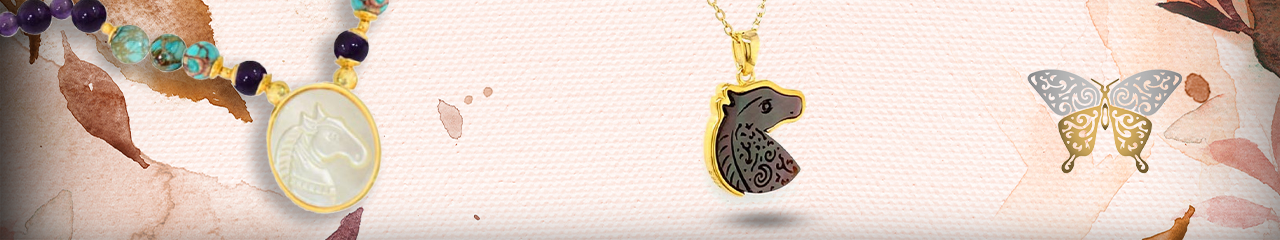 WHITE HORSE SEASHELL NECKLACE WITH RED AGATE STONE, YELLOW JADE AND PEARL STONE..